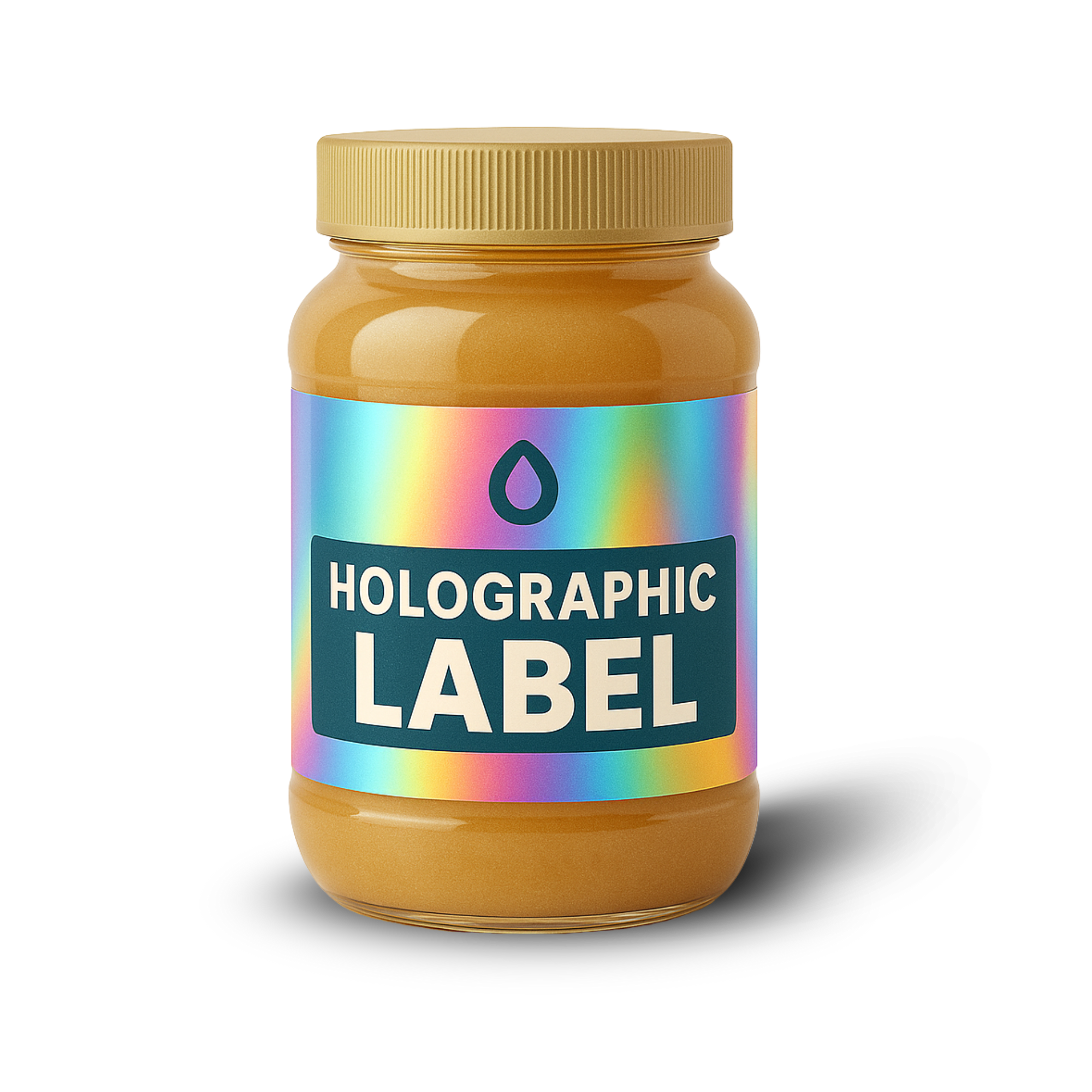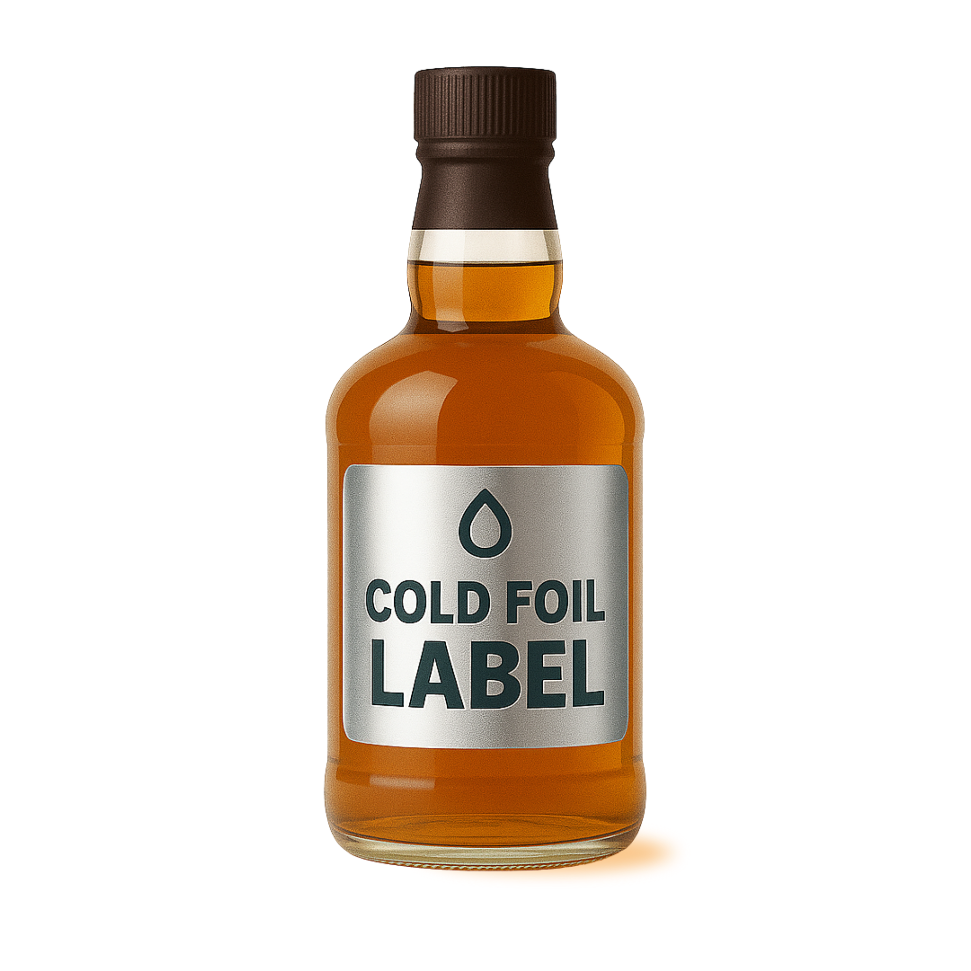 Glossy, metallic-effect labels created using cold foil stamping; ideal for luxurious packaging and attention-grabbing branding across various products.